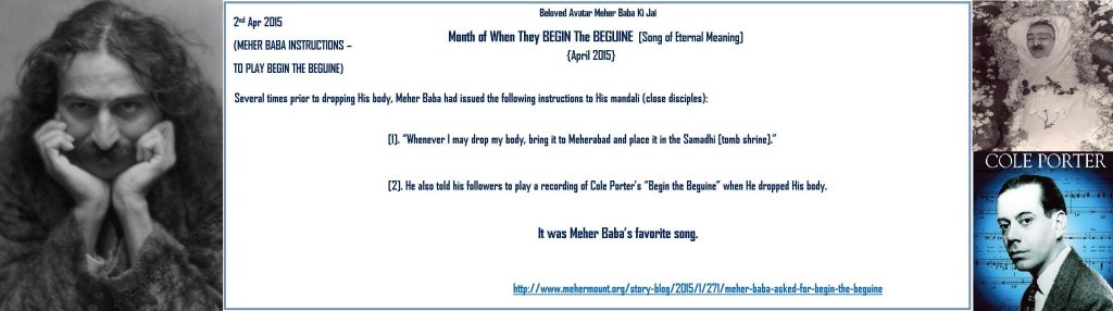 美赫巴巴曾说过这是他最喜爱的歌。正因如此,1969年1月31日,当他的身体被安放入墓穴/陵墓时,这首歌被连续播放了七次。播放的版本是莱斯利“哈奇”·哈钦森演唱的。多年来,巴巴听过这首歌的许多版本,包括阿蒂·肖的版本。