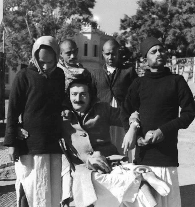 因此,计划好某一次玛司特之旅后,巴巴首先选择他的时间,然后挑选一队门徒伴随他,从来不少于两人,且常常比这个数目多得多。他随后命令一位专家,即拜度,卡卡或埃瑞奇,先行侦察某些城市或地区,问询、会见或挑选似乎合适的灵魂,并在“D日”前回到他的基地,或者在行动计划上第一个城镇的火车站与他会合。在第二章中对恰提巴巴的报导里,我描述了这些侦察旅行之一,虽然那次比大多数的侦察旅行都更考验人,但每一次的侦察远征都是在紧迫的时间下进行的,且极其艰苦费力。你若是在拜度或卡卡畅怀的时刻堵着他们,刺激他们描绘一番有些旅行,你将听到徒步穿越不毛沙地和漆黑森林,爬过山岭和峡谷的故事;骑骆驼、骡子、马驹和驴子的故事;坐牛车和马车在炼狱般的小路上颠簸数英里的故事;在超载的三等火车厢里日夜饱受臭汗与脏乱的故事;总之,你将听到旅行的每一种疾苦,而这些仅仅发生在巴巴的几乎每一次玛司特之旅的初步侦察中。
