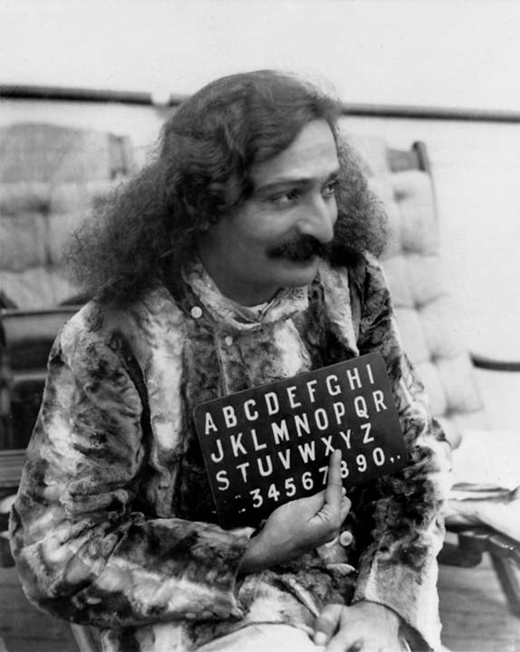 沉默并没有影响巴巴与人们的正常交流。最初几个月,他通过写字板、后来在英文字母板上指点字母进行交流。1954年,他连字母板也放弃了,完全靠一套特殊的手势“交谈”。美赫巴巴的沉默还延申到书写。在1927年停止了写字,除签名外。