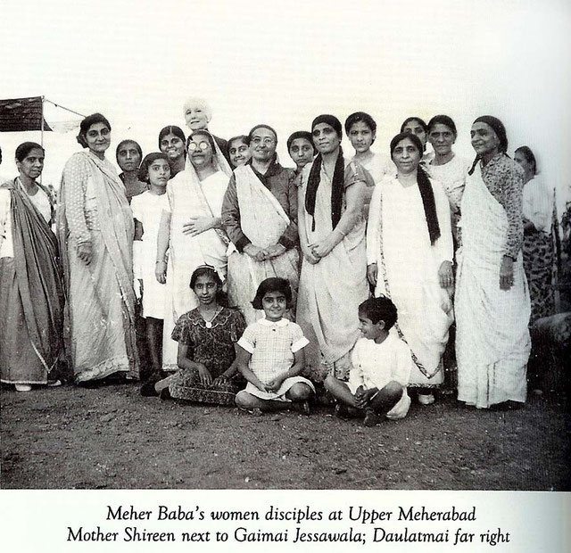 美赫巴巴的女门徒在上美拉巴德。母亲希芮茵的旁边是盖麦·杰萨瓦拉;朵拉特麦在最右边。《美赫主》提供